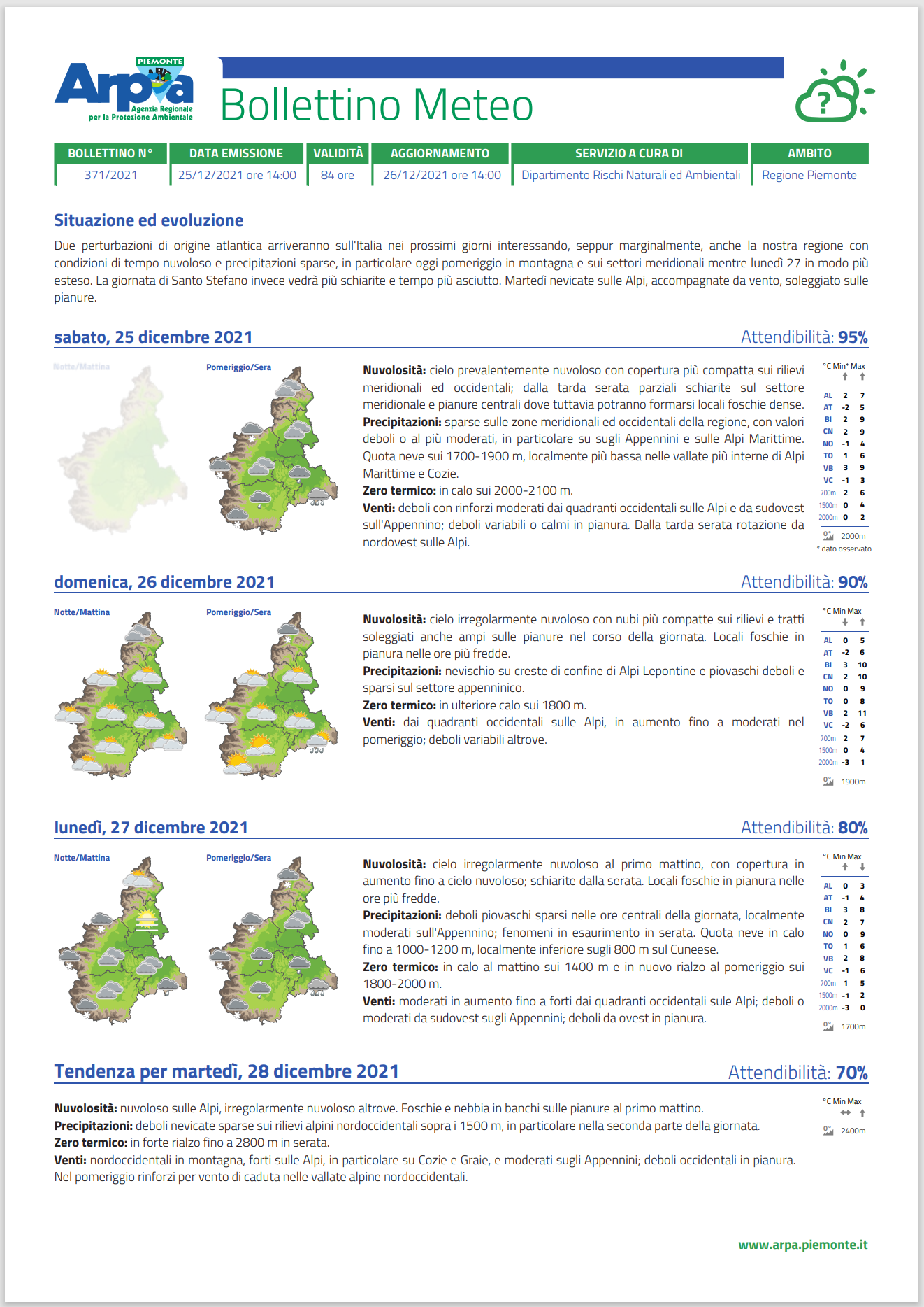 Inoltre il bollettino meteo, per dettagliato che